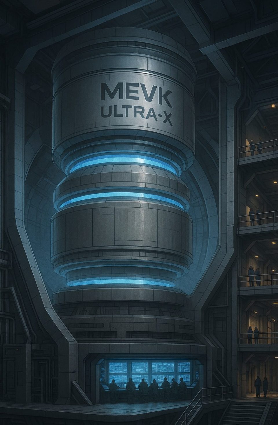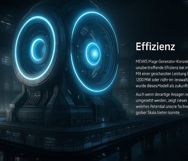 Diese futuristische Generatoranlage stellt eine visionäre Weiterentwicklung unserer bestehenden MEVK-Module dar. Sie wurde für maximale Leistungskapazität und Einsatzbereitschaft im industriellen Maßstab konzipiert – speziell für große Smart-Cities, Raumfahrtstützpunkte oder autonome Megafabriken mit dauerhaft hohem Energiebedarf.