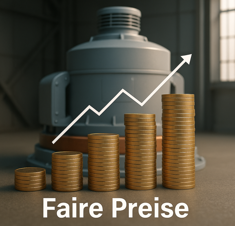 Diese Anlage befindet sich aktuell in der Konzeptphase. Eine Realisierung ist erst dann vorgesehen, wenn unsere bestehenden MEVK-Generatoren erfolgreich gefertigt, getestet und im Dauerbetrieb validiert wurden. Aufgrund der Dimensionen und der besonderen Sicherheitsanforderungen wird sie ausschließlich an ausgewählten Standorten mit spezieller Infrastruktur errichtet werden können.